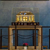 Pfarrei Heilig Kreuz Rheingau Unsere Pfarrei Wallfahrten & Pilgern St.-Hildegard-Wallfahrt Wallfahrten Erhard Hess Schrein der Hl. Hildegard in der Wallfahrtskirche St. Hildegard Eibingen. St.-Hildega