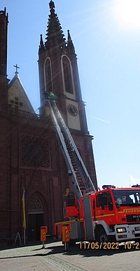 Pfarrei Heilig Kreuz Rheingau Kirchorte Heilig Kreuz Geisenheim Fahnenrettung durch Küster und Bürgermeister Sabine Frank 25.05.2022 Fahnenrettung durch Küster und Bürgermeister Fahnenrettung durch Kü