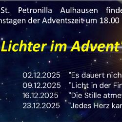 In St. Petronilla Aulhausen finden wieder an den Dienstagen der Adventszeit um 18.00 Uhr die Auszeiten "Lichter im […]