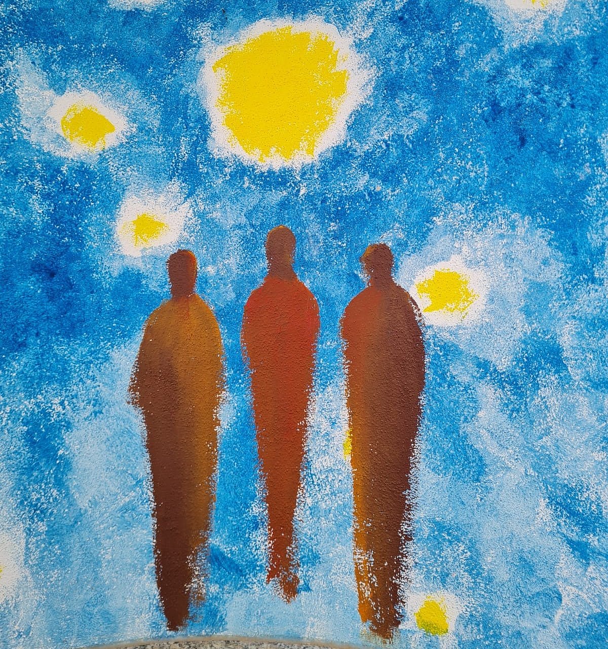 Dann wuchs ein Bild in der Grotte, „Die Emmausjünger“. Ein Zeichen für uns, dass Jesus uns wie die Emmausjünger auf unserem Lebensweg begleitet.